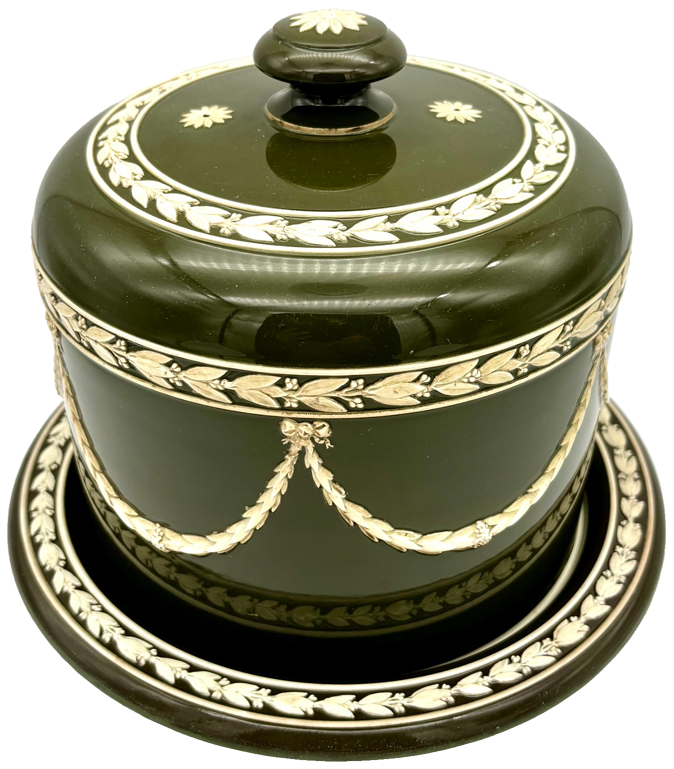 Products Collectables Categories: Select a Category Antiques Woodenware Metalware Silver Collectables Advertising Collectables Kitchen & Home Clothes, Shoes & Accessories Jewelry & Watches Pottery, Ceramics & Glass Advertising Collectables | Kitchen & Home | Joshia Wedgwood Dark Green Cheese Stand or Dome – Antique C. 1885